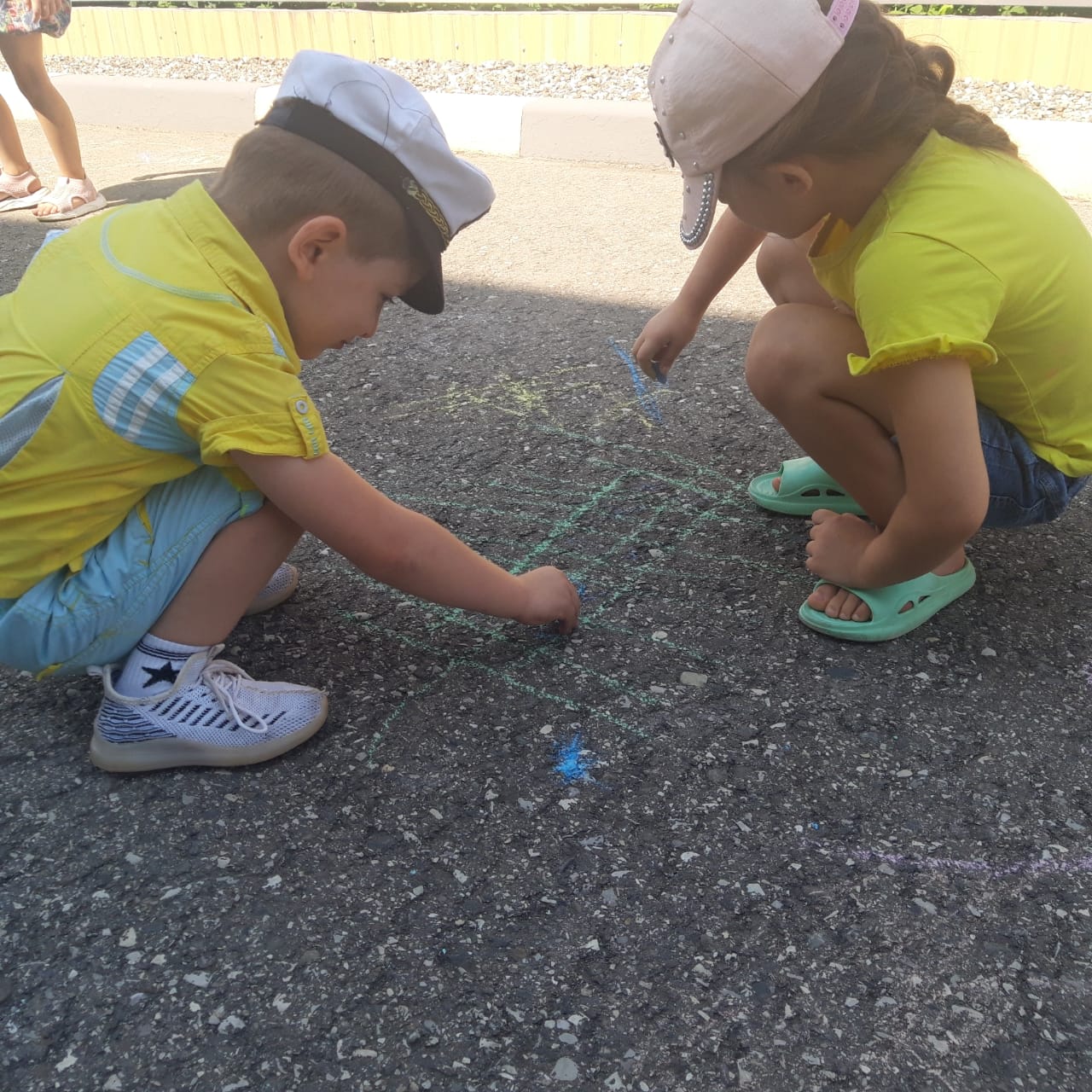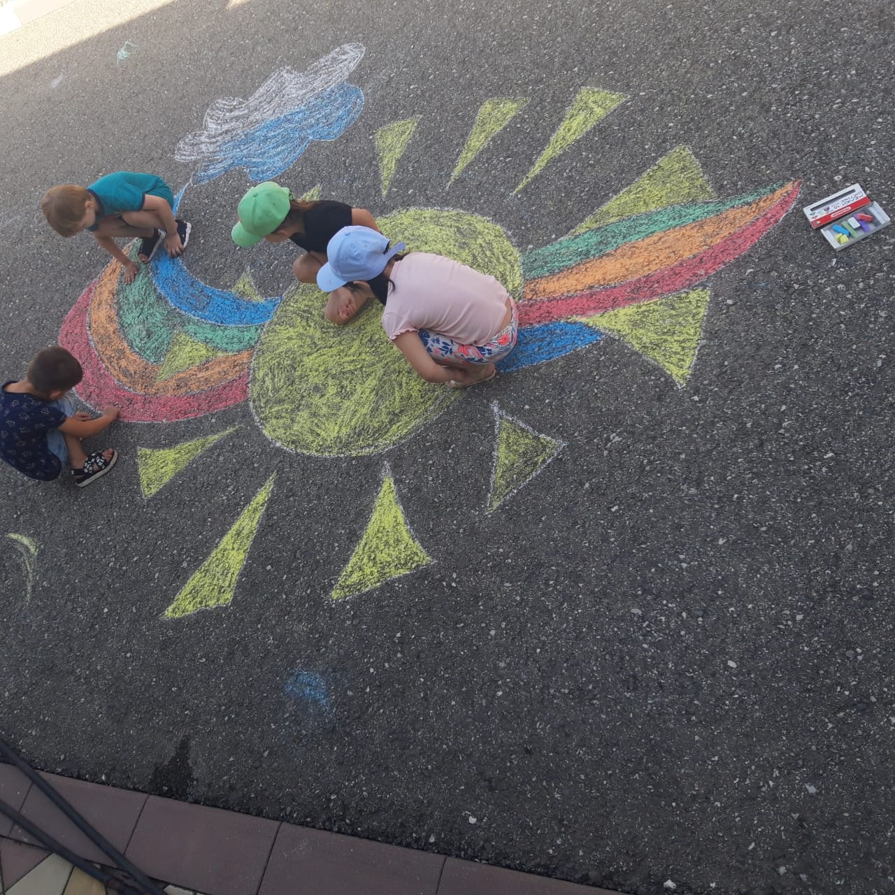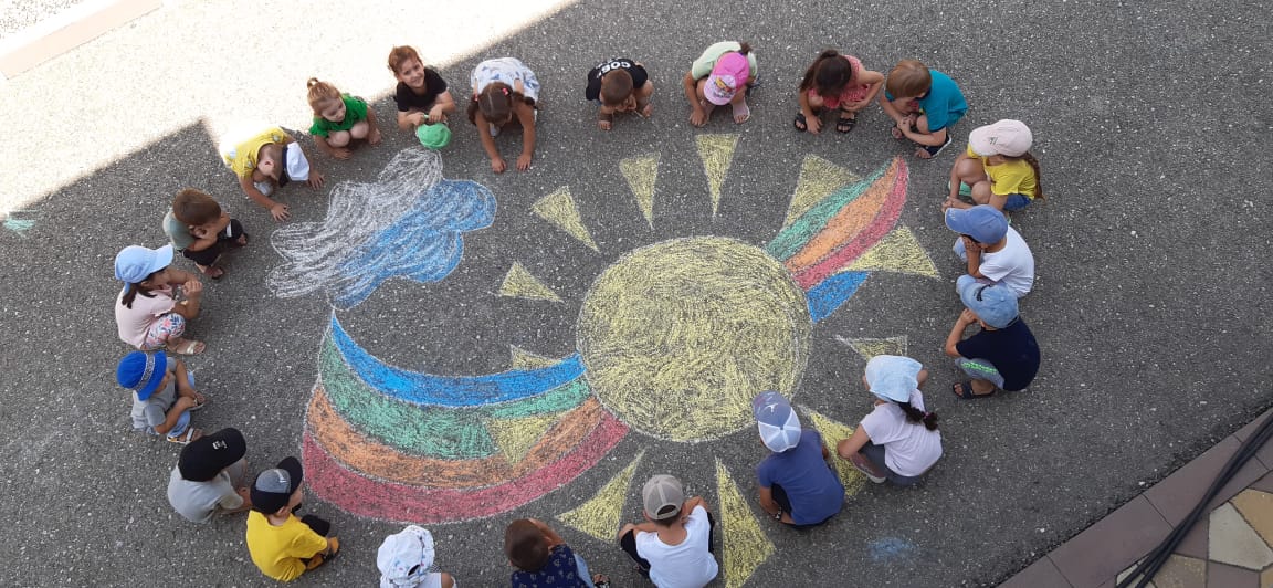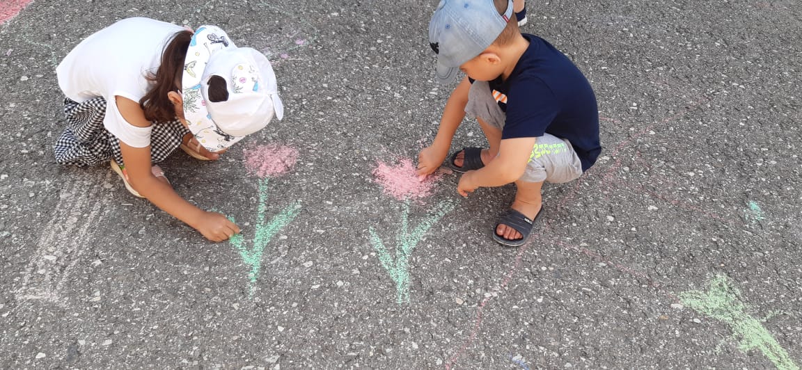Педагогом из средней группы было организовано занятие совместно с детьми рисунков на асфальте.
