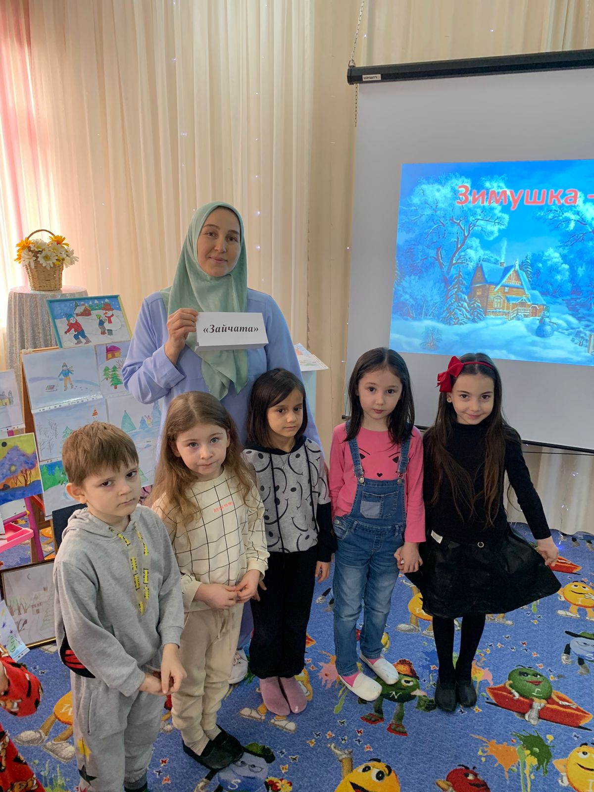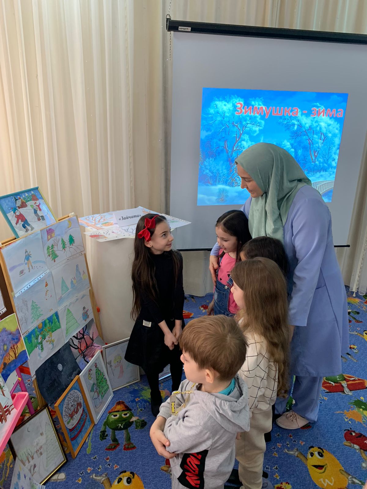 В МБДОУ «Детский сад № 4 «Радуга» г. Аргун» в рамках реализации нацпроекта «Культура» и согласно годовому плану работы МБДОУ 31 января 2023 г. в актовом зале Д/с прошел конкурс детских рисунков на тему: «Зимушка-зима».