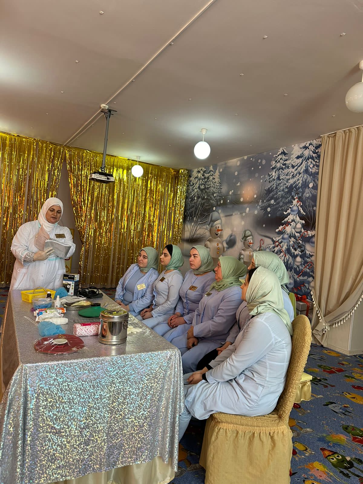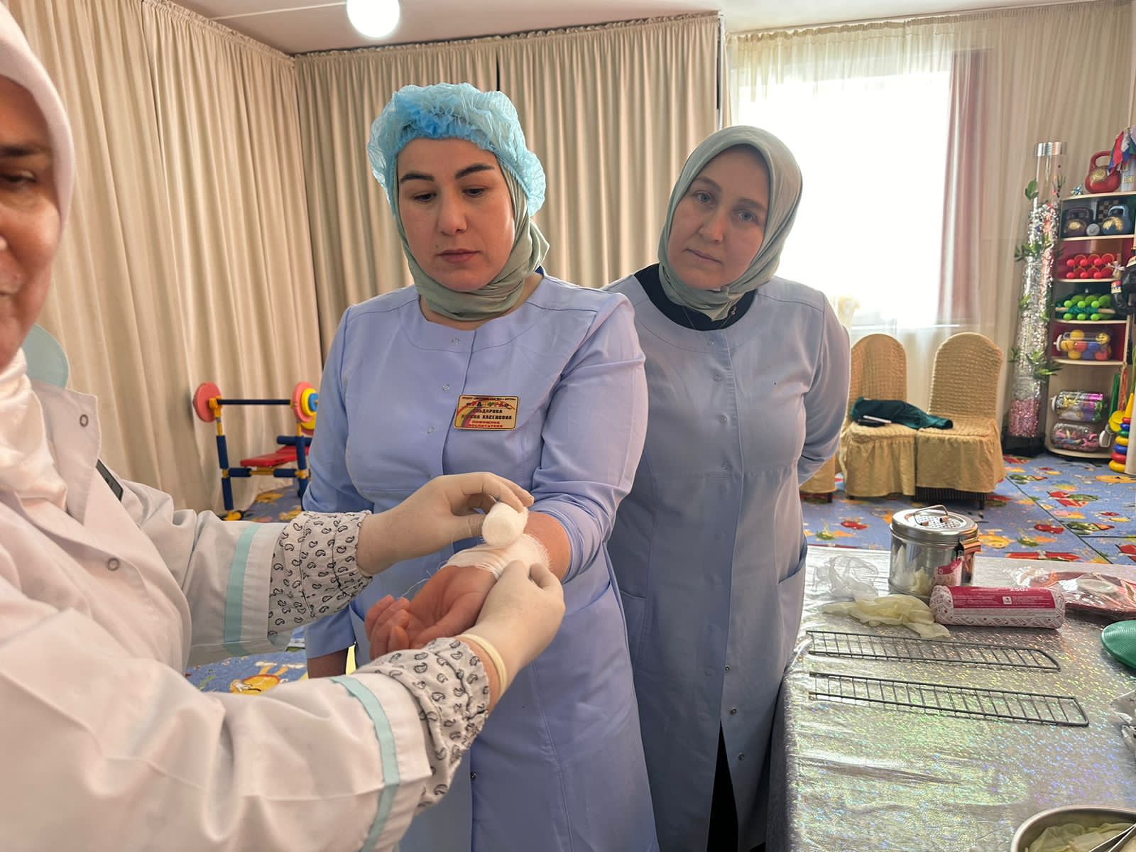 Согласно плану совместных мероприятий МБДОУ и ГИБДД ОМВД России по г.Аргун на 2023-2024 учебный год 25.01.2024 г. в ДОУ прошел практикум для педагогов на тему: "Оказание первой помощи в случае травматизма". Практикум провела медицинская сестра ДОУ Мусаева Яха Абусаидовна