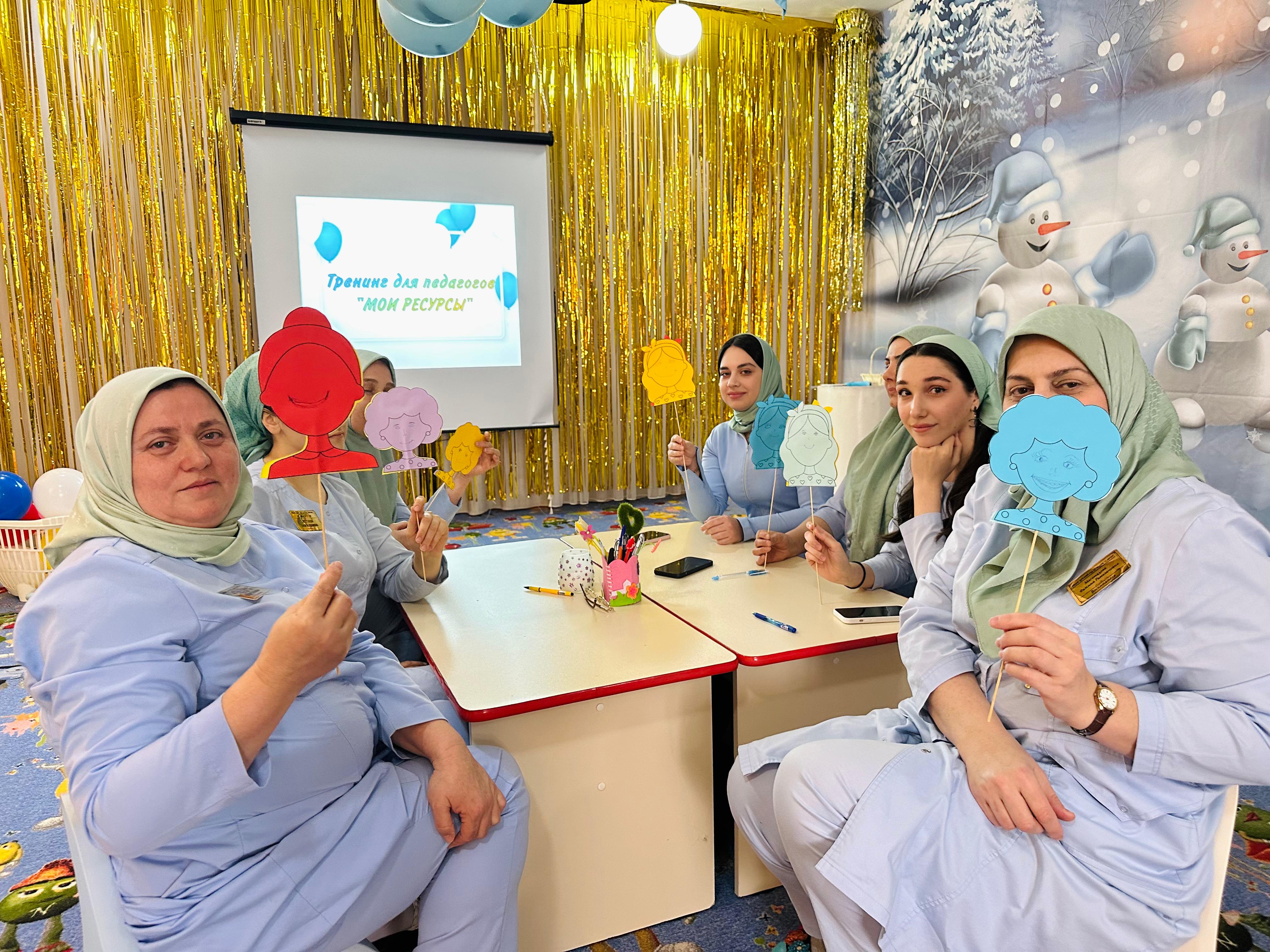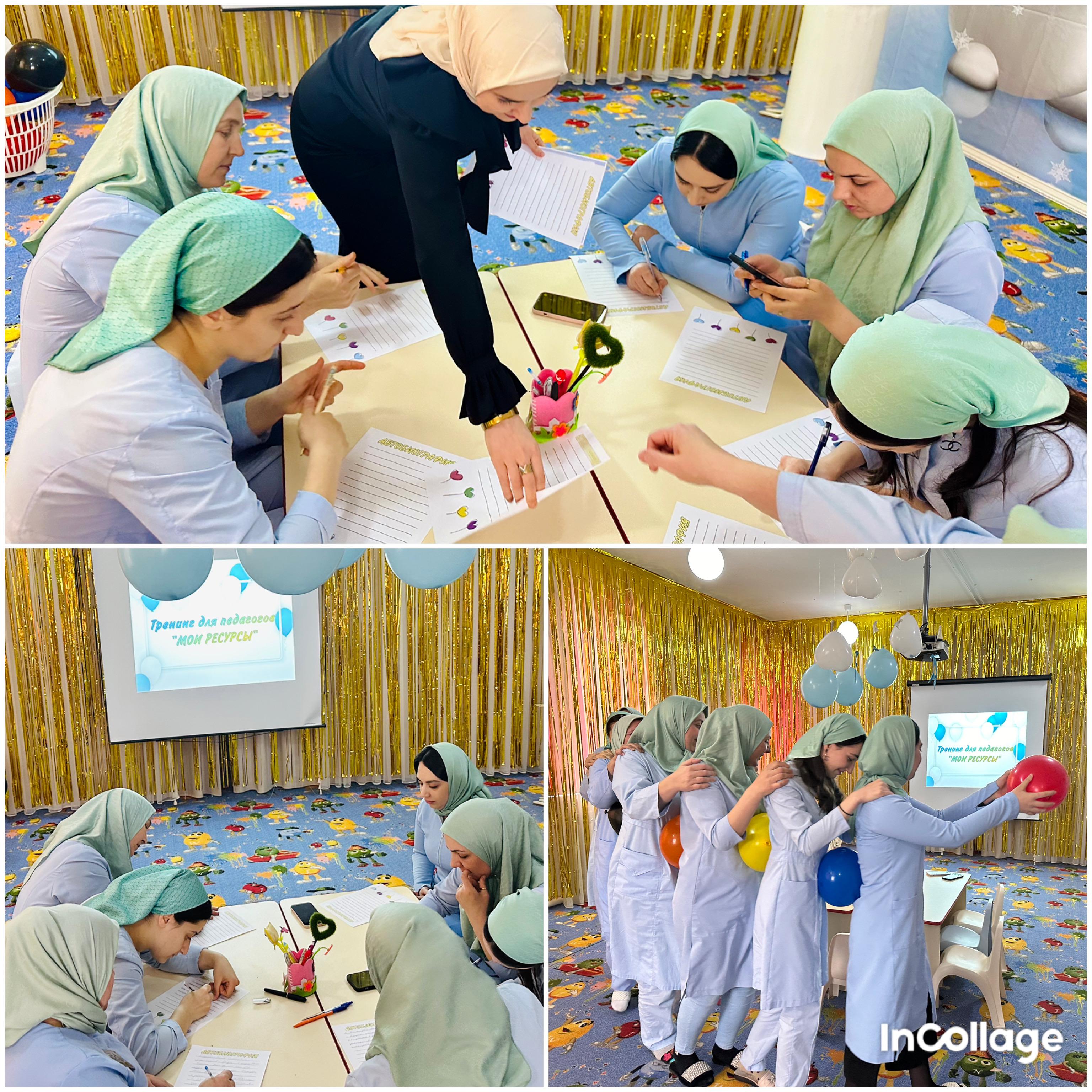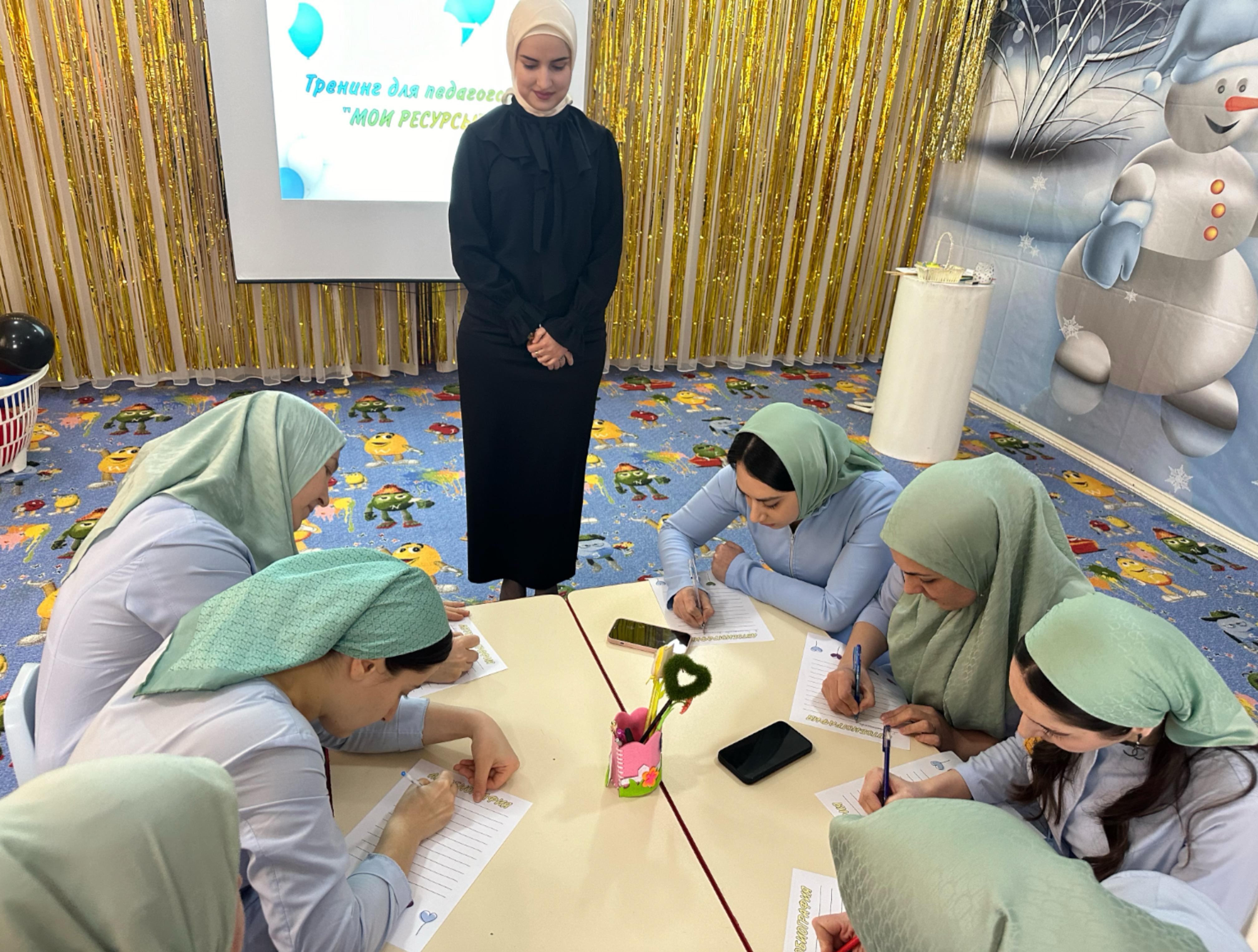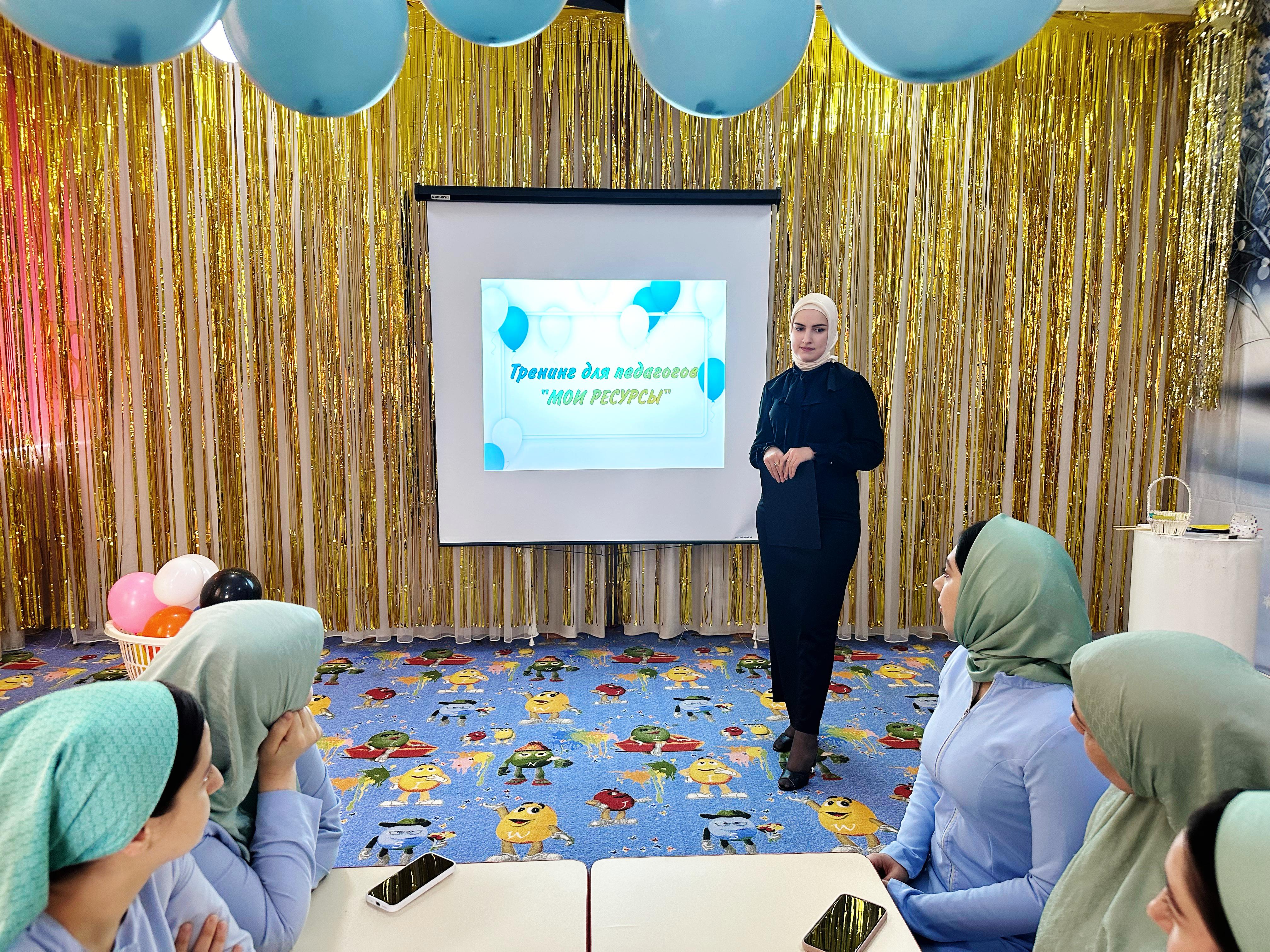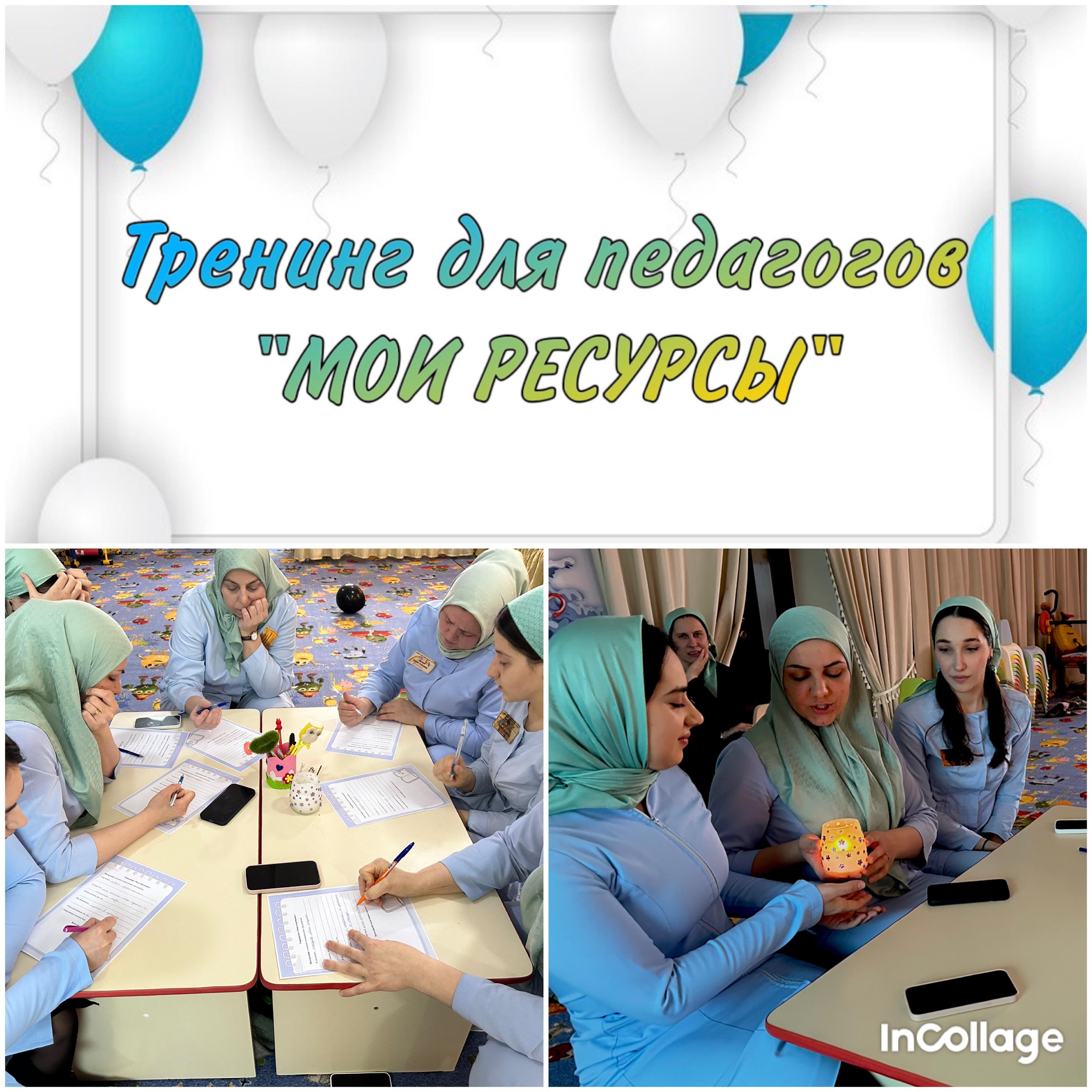 21 февраля 2024 г. в актовом зале МБДОУ "Детский сад № 4 "Радуга" г. Аргун" прошел психологический тренинг на тему "Мои ресурсы".Цель: поиск ресурсного состояния педагогических работников.Тренинг провел педагог-психолог Шидеева Хадижат Аладыевна